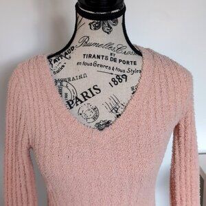 🌴2/$25🌴FOREVER 21 | Women's Light Pink Soft Fuzzy V-Neck Ribbed Sweater