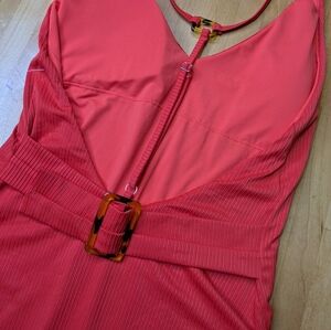 2/$25-Miss Adola Ribbed T-back One Piece Orange/Red Lower Back Belt Cinch Vneck