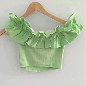🌴2/$25🌴ZARA | Women's Pastel Green Ribbed/Ruffled Crop Top