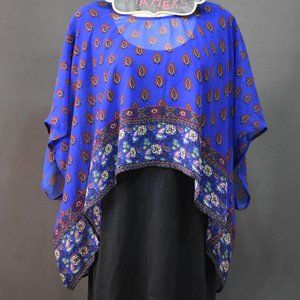 This brilliantly blue-tiful Jessica Simpson sheer blouse is in excellent like new condition. Bowing crisscross backstraps, poncho drop sleeves, sheerly sexy and sophisticated. Quality, luxury, style and sass just a few words to use to describe this piece. Diverse wear- modest or bold you decide.