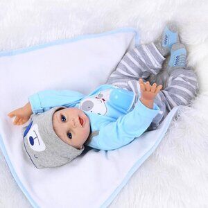 🆕 22inch Cloth Body With Vinyl Limbs Reborn Baby Boy Dolls Cute Male Baby ls