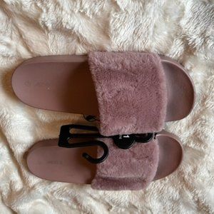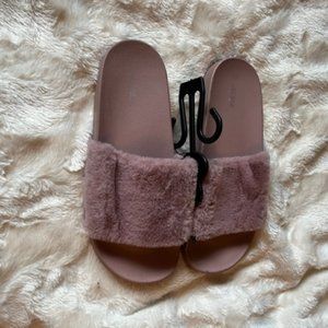 Ardene Cozy Faux Fur Slippers brand new with tags. Slide on slippers Ladies Size 11 Colour depends on device/screen settings and lighting in pictures.