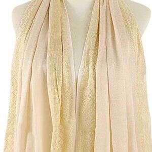 Elegant and versatile, this beige scarf features a delicate pattern and fringed edges, adding a touch of sophistication to any outfit. Its lightweight design makes it perfect for layering, providing both style and comfort. Ideal for various occasions, this accessory enhances your look with its subtle charm and elegance.