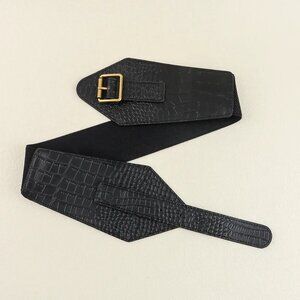 2/$30 Black Crocodile Embossed Wide Waist Belt Gold Buckle Cincher Dress Tunic