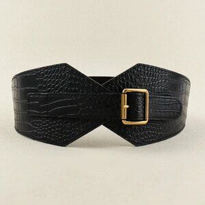 TAGS: WaistBelt #WideBelt #CrocodileEmbossed #FauxLeather #StatementBelt #GoldBuckle #OfficeWear #Chic #FashionAccessory #PoshFinds