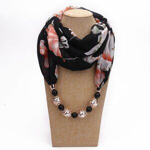 2/$30 Black Floral Beaded Neck Scarf Chiffon Gold Pendant Jewelry Women Gifts