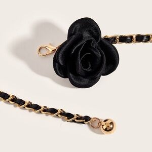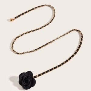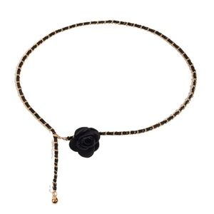 2/$30 Black Gold Rose Flower PU Leather Chain Belt Rope For Dress Tunic Outfit