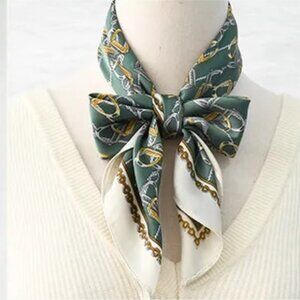 2/$30 Equestrian Pattern Green Silk Scarf Satin Head Neck Tie Shawl Bag Decor