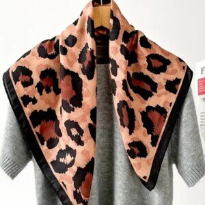 2/$30 Leopard Print Velvet Silky Scarf Square Brown Black Neck Handbag Accessory