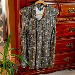 2/$30 Lily Morgan Green Floral Sleeveless Blouse