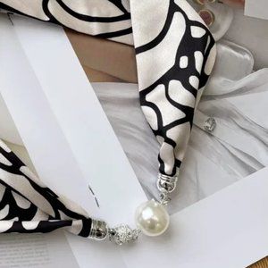2/$30 Magnetic Snap Silky Black and White Patterned Scarf Beads Pearl Headband