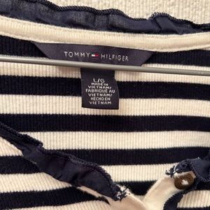 ✨ 2/$30 ✨ Navy & White Striped Tommy Hilfiger Top with Ruffle trim in size L