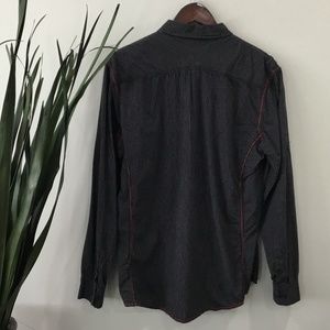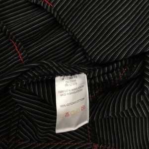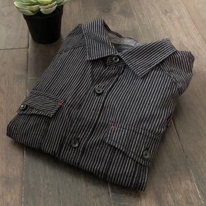 Black and white striped dress shirt with red stitching - in excellent condition!
