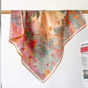 The vibrant colours and classic design evoke a timeless, vintage feel, perfect for adding a touch of sophistication to any outfit. This versatile square scarf can be worn as a neck scarf, a headscarf, tied to a handbag, or styled as a chic belt. The silky-smooth fabric feels soft and luxurious, making it a perfect accessory for both day and night.
