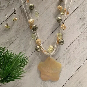 Multi-strand and layered necklace set with coordinated earrings. Please see pictures for measurements.