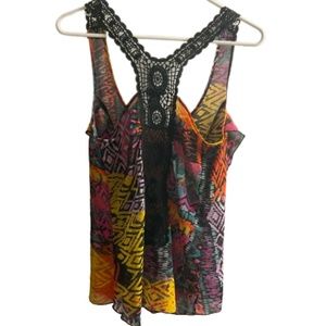 Amazing wild top, Tribal / African / Afrikan/ Aztec multicolored design with tie die backdrop