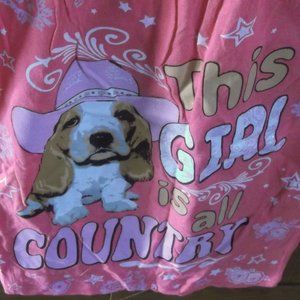 Girl's T-shirt by Ross Sportswear for Girls. "This Girl is all Country" on front. Purchased in the USA. Brand new with tags. 100% cotton, size large. Tag states the colour as hot pink. Colour is more like that as shown in last picture. Stars, flowers and a cute puppy on the front. Machine wash warm. Ready to add some fun to your little one's wardrobe! This post is for one item only. Mix and match for bundle price. Colour depends on device/screen settings and lighting in pictures. All measurements are approximate and may slightly vary. Measurements are taken by hand with item laying flat and unstretched. All items are from my smoke free home.