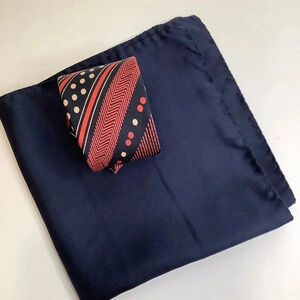 2/$30 VINTAGE Navy Silk Stripe Tie & Pocket Square