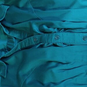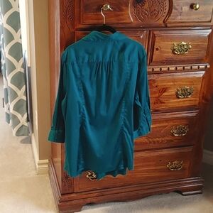 2/$30 Women's Jewel Tone Emerald Green Button Down Blouse