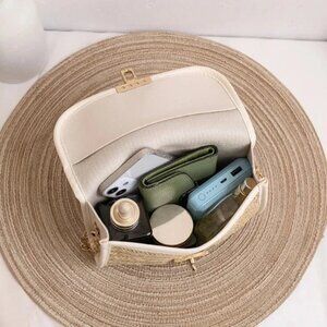 This chic small bag blends rustic elegance with modern style. Its woven texture is highlighted by sleek black trim, creating a striking contrast. The front features a sophisticated gold-tone clasp, complemented by a matching chain strap for a touch of glamour. Compact yet stylish, this bag is perfect for both casual outings and elegant occasions, ensuring versatility and fashion-forward appeal.
