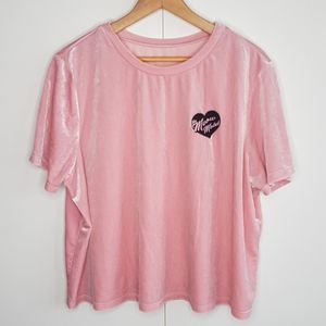 2/$30🌻F21 x LASER KITTEN Meow Motel Pink Velour Crop Tee