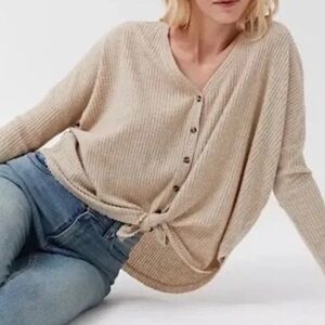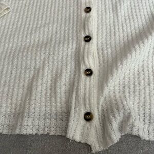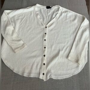 Stylish white waffle knit top with button-up front. Perfect for casual wear.