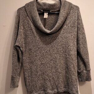 🍁2/30🍁Vintage Y2K Sweater Knit Cowl Neck 3/4 length Dolman Sleeve Salt+Pepper