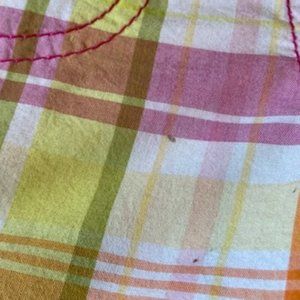 Children Place Girls plaid shorts brand new with tags in Size 10. Shorts are pink, orange and yellow colours with two front pockets and two back pockets. e 100% cotton, machine wash warm. Shorts have some marking on the back just under the pocket. See picture #5. Comfy and cute, it's ready for all her summer adventures. This post is for one item only. Mix and match for bundle price. Colour depends on device/screen settings and lighting in pictures. All measurements are approximate and may slightly vary. Measurements are taken by hand with item laying flat and unstretched. All items are from my smoke free home.