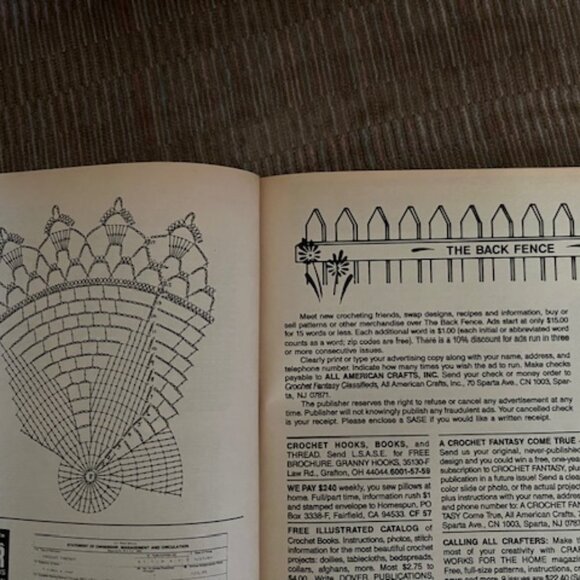 Crochet Fantasy Home Decorating Special Vol 9 No 2 Vintage magazine from February 1990. Includes variety of patterns for sweaters, afghans, doilies, tablecloth and more! This vintage Crochet Fantasy home decorating special from February 1990 is a must-have for any crochet enthusiast. The pattern collection includes various mixed lots, and is perfect for those looking to add a touch of retro charm to their homes. The brand, Crochet Fantasy, is well-known for its high-quality patterns and this collection is no exception. Whether you're a beginner or an experienced crocheter, this magazine is sure to inspire and educate. Published by All American Crafts, USA. Magazine is in good condition. Newsprint pages in centre of magazine has pages that are yellowing at top, see pictures. Glossy pages are okay. No pen markings, all pages intact. No address label. This post is for one item only. Mix and match for bundle price. All items are from my smoke free home.