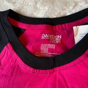Danskin Now Girl's T-shirt size Large - 10/12 brand new with tags. T-shirt is Pink/Fuschia with black sleeves, made from 100% organic cotton. Machine wash cold. This post is for one item only. Mix and match for bundle price. Ready to add some fun to your little one's wardrobe! Colour depends on device/screen settings and lighting in pictures. All items are from my smoke free home.