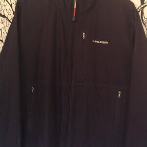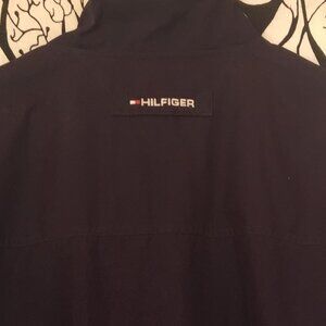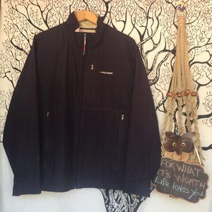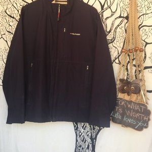 This Tommy Hilfiger navy blue sports zippered jacket is in excellent condition. Collared with 3 zippered outer pockets this jacket is versatile, comfortable and high quality.