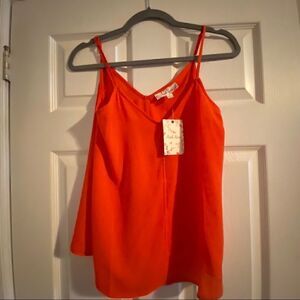 Ladies tank top perfect for summer days or colder days under blazers. Light feeling. New with tag. Coral colour, 100% polyester.