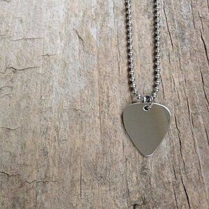 As part of my guitar pick necklace collection, this one will be made with shiny mirror finish. The sturdy ball chain and guitar pick are created entirely of stainless steel which makes for an amazing alternative to sterling silver. Check my closet for other chain lengths and guitar pick finishes.