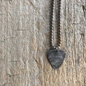 As part of my guitar pick necklace collection, this one will be made with a distressed textured finish. The sturdy ball chain and guitar pick are created entirely of stainless steel which makes for an amazing alternative to sterling silver.