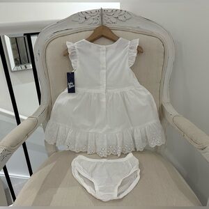 🩰 24 Mth Baby Girl Fancy Cotton Eyelet Dress With Bow & Matching Panty NWT
