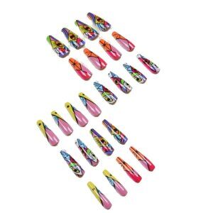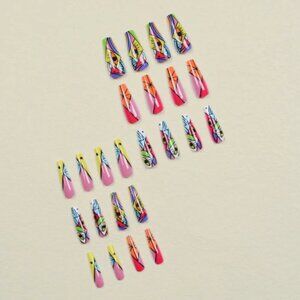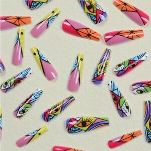 24 Piece Colourful Abstract Press On False Fake Nails Eyes