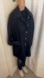 Elevate your style with this chic black cape coat. Featuring a sophisticated button detail, it's perfect for any occasion. So the sleeves have like a textured fabric as well as the collar and a trim on the cuffs the back has a sort of a pea coat style look to it gorgeous jacket 34 inches in length 24 inches PTP, which is armpit to arm armpit across the chest.