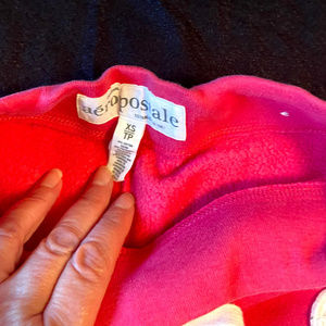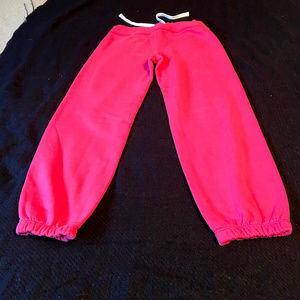 Aeropostale ladies capri jogger/sweat pants in excellent used condition. Size is XS. Length from top of waistband to bottom of cuff is approximately 30" in length. Fuschia in colour with white lettering. Elasticized cuff at bottom. Pants are 70% cotton and 30% polyester. Machine wash cold, gentle cycle. Versatile for lounge days or active outings, these joggers are a cheerful addition to any youthful wardrobe. This post is for one item only. Mix and match for bundle price. Colour depends on device/screen settings and lighting in pictures. All measurements are approximate and may slightly vary. Measurements are taken by hand with item laying flat and unstretched. All items are from my smoke free home.