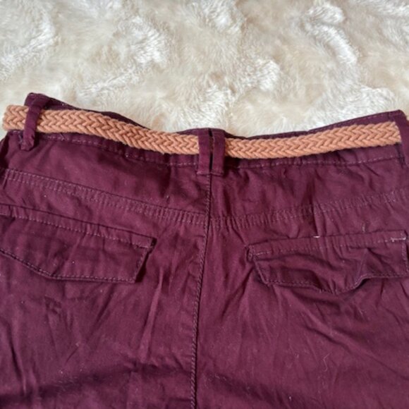 Bluenotes Low Rise Shortie Burgundy Belted Shorts in very good pre-loved condition, Ladies/Junior Size 1. Has 2 pockets in front and two in back. Cuffs with button tabs. Belt is rope-like material with faux leather at ends. Shorts are 98 % cotton, 2% spandex. Machine wash gentle. This post is for one item only. Mix and match for bundle price. Colour depends on device/screen settings and lighting in pictures. All measurements are approximate and may slightly vary. Measurements are taken by hand with item laying flat and unstretched. All items are from my smoke free home.
