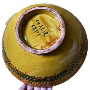 2/$40 Boho large hand painted Morocco clay bowl, signed