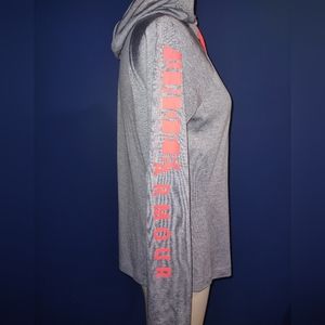 2/$40 EUC Under Armour Heatgear Long Sleeve Hooded Loose Fit Shirt S GRAY/CORAL