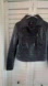 Sleek black leather jacket by Forever 21. Features asymmetrical zip and textured design. Perfect for edgy style.