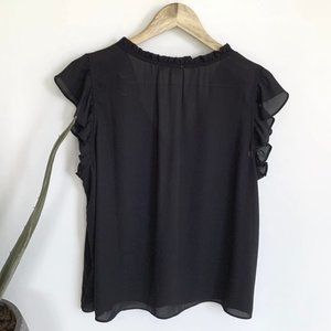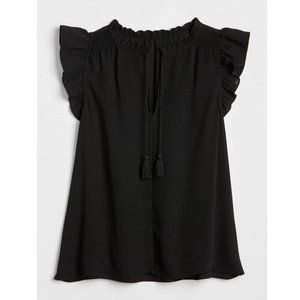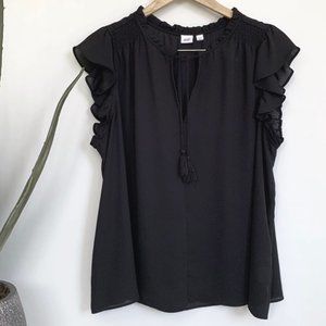 2/$40 GAP XL Black ruffle sleeve split-neck blouse top