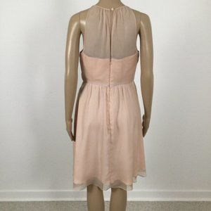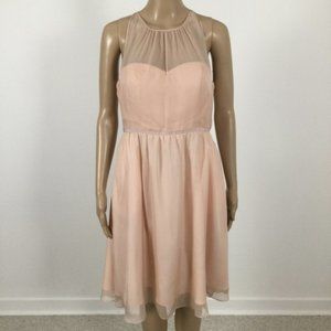 👛 2/$40 HITHERTO Strapless Fit/Flare Midi Pink Occasion Dress with Mesh Bodice