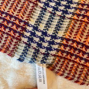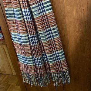 Scarf is new without tags. 100% acrylic. Multicoloured plaid with fringes on bottom. Machine washable. This post is for one item only. Mix and match for bundle price. Colour depends on device/screen settings and lighting in pictures. All items are from my smoke free home.