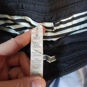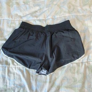 Good condition running shorts with striped inner liner. Very unique, older style Speed Up shorts from Lululemon. No rips or stains, just minor piling on behind as seen in photos. Size 4, tag confirmed.
