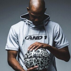2/40$ Men’s AND1 gray Short Sleeve Hoodie with pouch pocket size medium