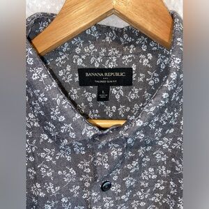 2/40$ Men’s BANANA REPUBLIC floral gray tailored slim buttoned shirt size Large