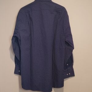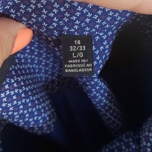 NWOT never worn or laundered. Beautiful dark blue shirt with print. 32/33 Large
