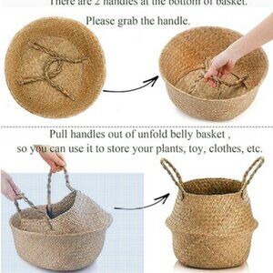Small Woven Seagrass belly Basket with Handles, Ideal Wicker Baskets Storage Plant Pot Basket, for Laundry, Small things storage, Picnic, Plant Pot Cover, Beach
